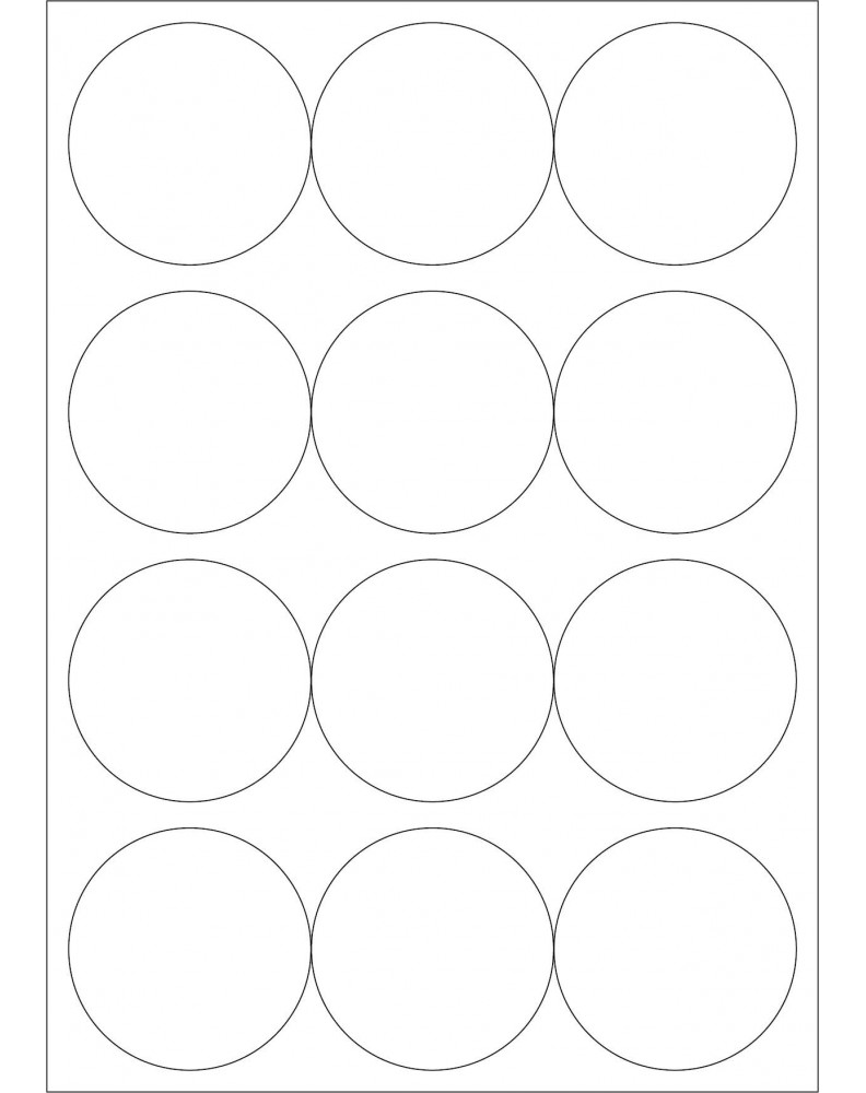Boà®tes de 100 planches A4, étiquettes rondes pour une impression en laser ou jet d'encre. Format de l'étiquette diamtère 63mm, vierge, blanche, ronde avec un adhésif permanent. Présentation sur 3 colonnes et 4 rangées, 12 étiquettes par planche, 1 200 étiquettes par boà®te.