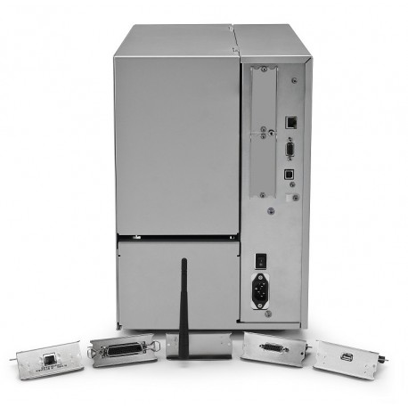 Résolution : 203 dpi et 300 dpi - Interfaces : USB, Rs232, Ethernet, Bluetooth, Wifi - Option : ré-enrouleur interne + peel off, cutter