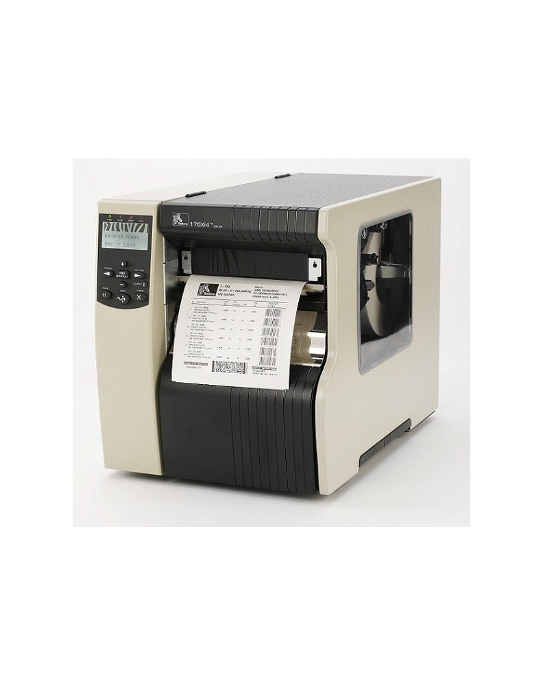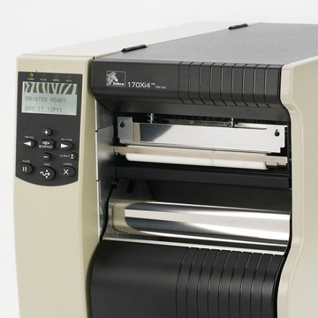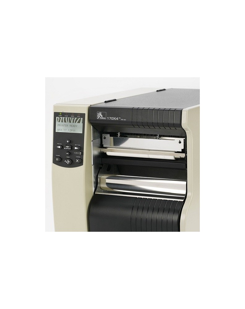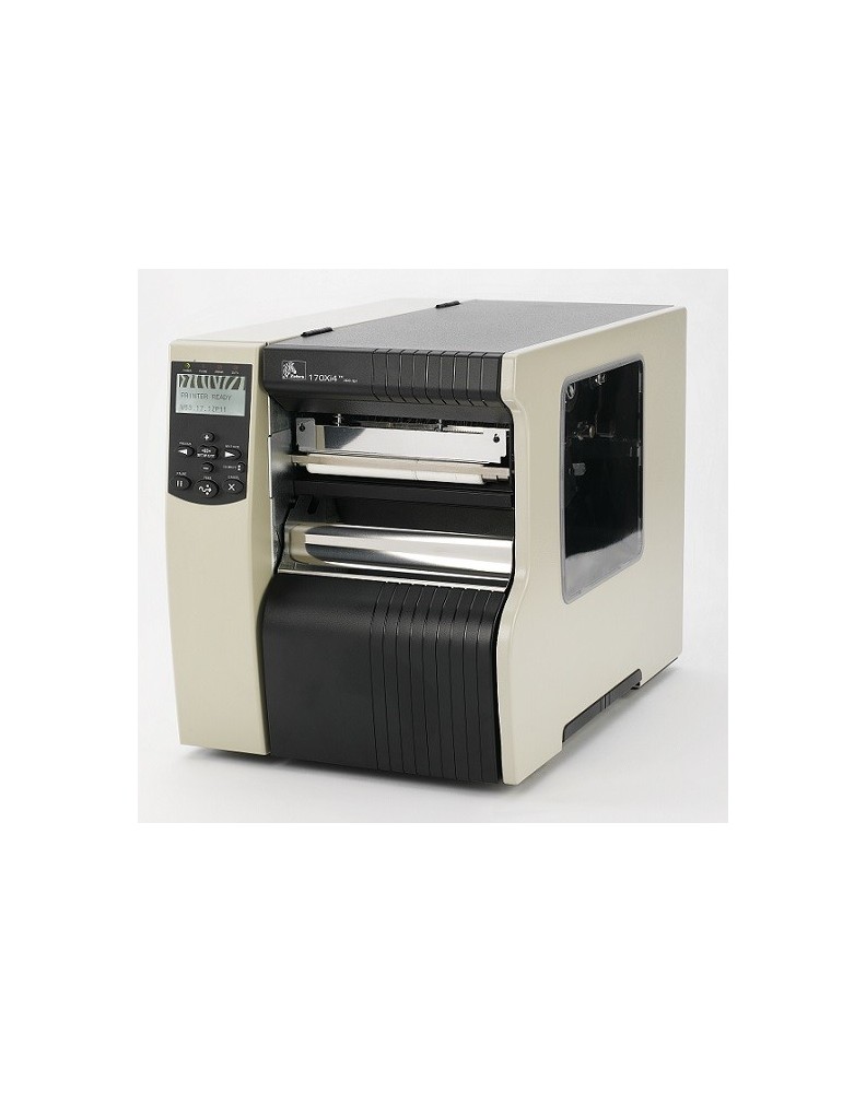 Zebra 170Xi4 imprimante étiquette transfert thermique, Résolution: (203 dpi), largeur de médium (max.): 180 mm, largeur d'impression (max.): 168 mm, 356 mm/s, multi-interface (RS232, USB, parallèle), serveur d'impression (interne 10/100), ZPLII, inclus: cordon secteur, écran LCD, cellules ajustables.