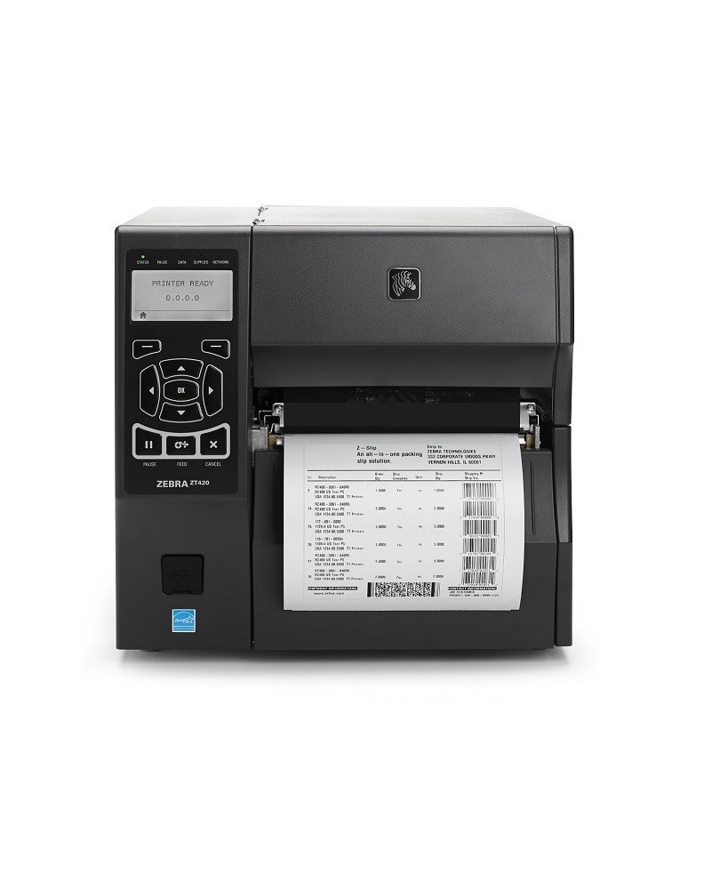 L'imprimante code barre Zebra ZT420 est une imprimante transfert thermique facile à utiliser grâce à son écran LCD, elle est très prisée en logisitique pour l'édition des étiquettes palettes. Robuste par sa conception entièrement métallique, la Zebra ZT420 est idéale pour l'impression d'étiquettes de laize 168mm maximum et tous supports papier velin, polypropylène, polyéthylène, polyester dont la durée de vie est plus ou moins longue. Elle s'intègre facilement en industrie, les secteurs de la santé, le transport, la distribution et la fabrication. Domaines d'application, gestion d'actifs, transbordement, gestion des stocks, traçabilité des échantillons de laboratoire, réception/expédition, logistique, traçabilité des produits en cours de fabrication, étiquetage de conformité, étiquettes d'information, étiquetage de dossiers médicaux, étiquetage de commandes, étiquetage d'ordonnances, contrôle qualité.