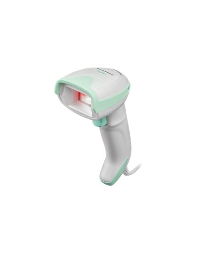 Scanner code barre filaire Datalogic GRYPHON GD4520-HC (pour la santé), imageur 2D avec illumation blanche, mono interface USB. Spot vert de bonne lecture. IP52, inclus : câble USB 2m noir et guide d'installation rapide. Couleur : blanc