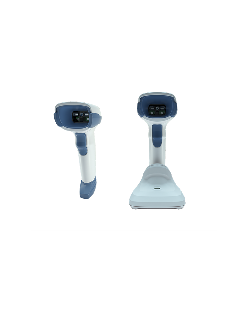 Scanner code barre sans fil BT Zebra DS2278-HC adapté au domaine de la santé. Imageur 2D multi interfaces USB (RS232, KBW, USB).Le lecteur code barre Zebra DS2278 est un pistolet à main sans fil Bluetooth (BT) portée 10m.