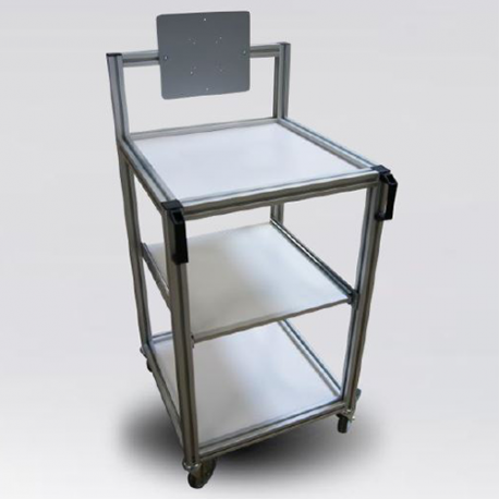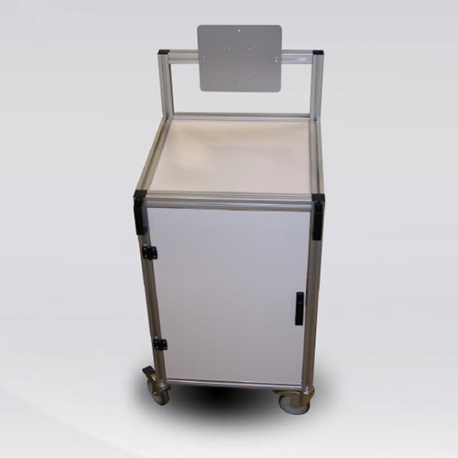 Chariot mobile standard ou sur mesure avec 1, 2 ou 3 plateaux et avec ou sans support d'écran.