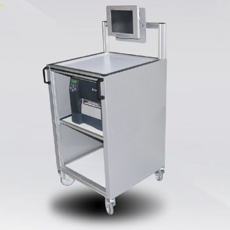 (Possibilité de recevoir plusieurs tablettes réglables en hauteur, pour tous types d’imprimantes et d’étiqueteuses. Les tablettes peuvent être soit fixes soit extractibles).